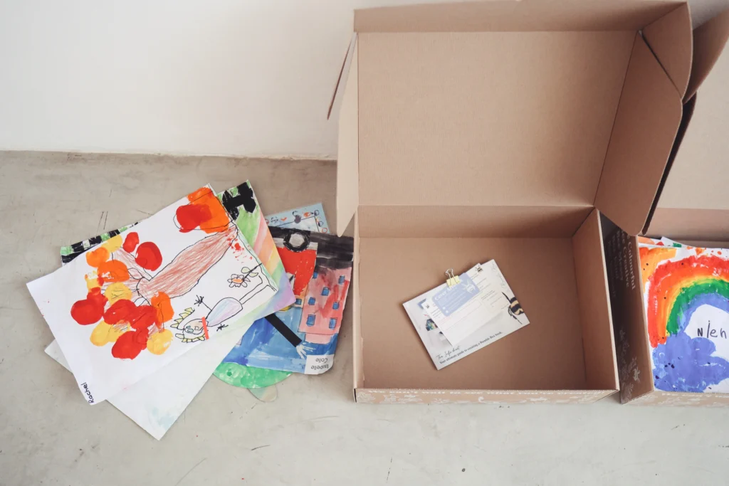 We send you an empty Bumble Box straight to your doorstep — ready to be filled with your child’s creations.