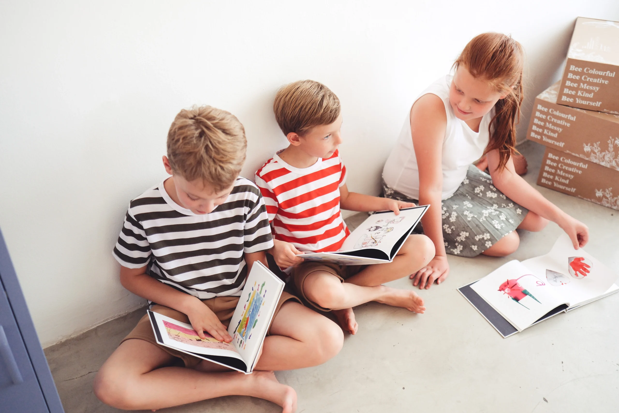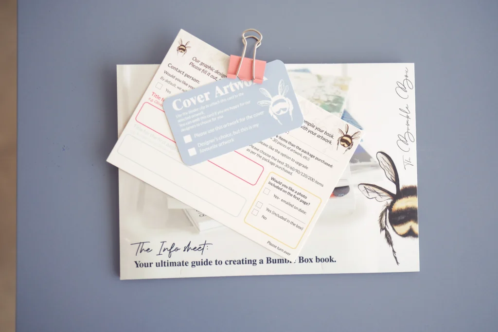 Each book features a beautifully designed wrap-around cover personalised with your child’s artwork, making every Bumble Box completely unique.
